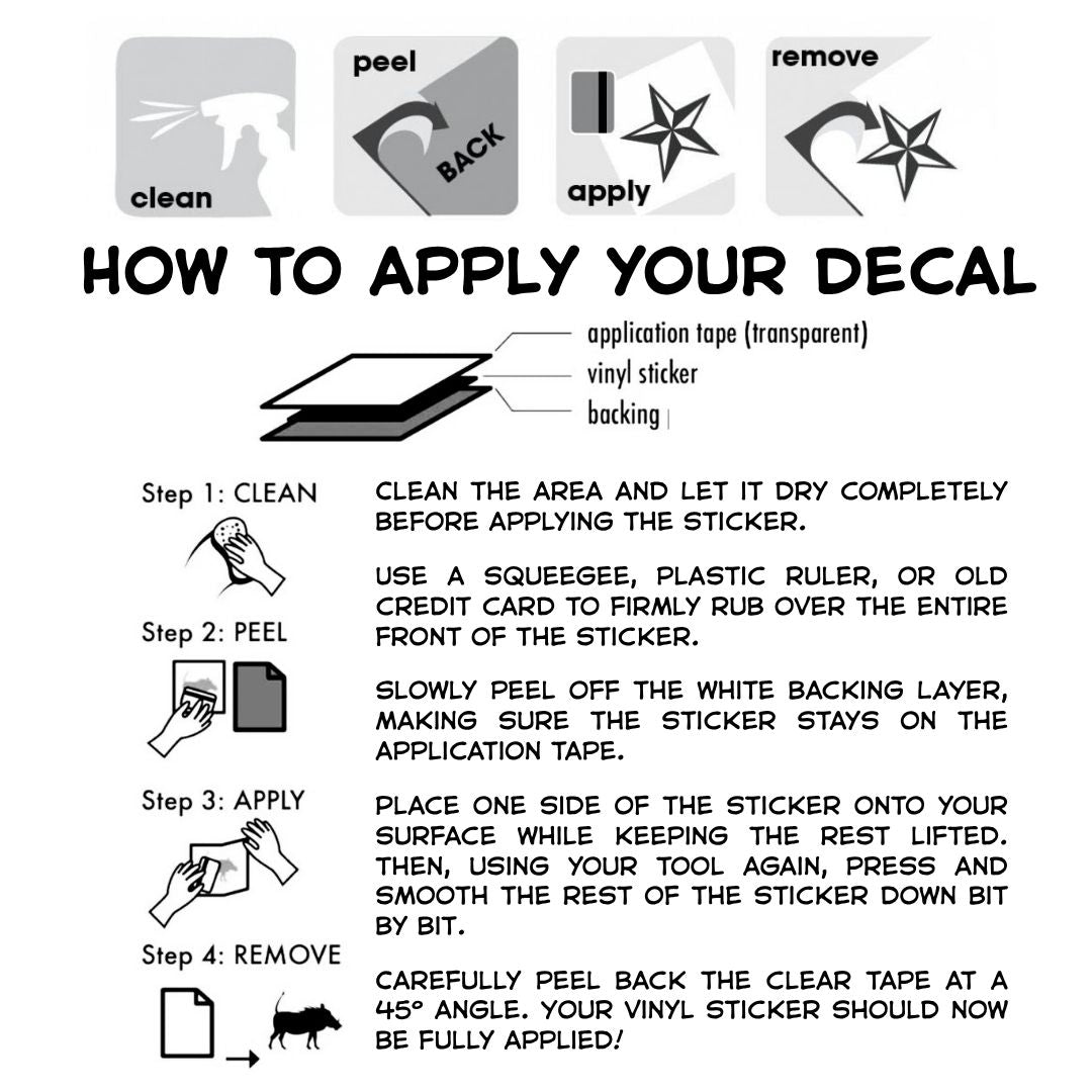 - Application: Our decals are applied with a transfer sheet, as they have no background. This gives a clean look, and they last longer.